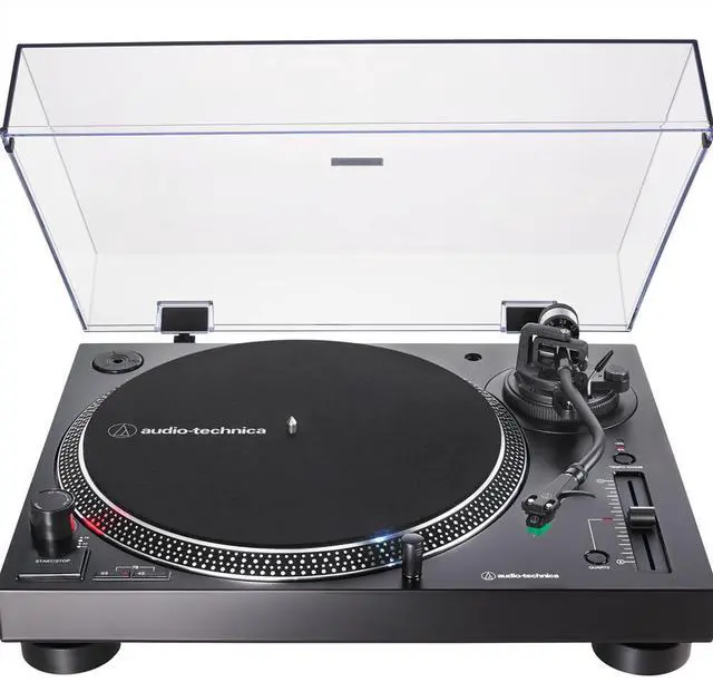 Quick Facts: Experience the high-fidelity audio of vinylDirect-drive, DC servo motorFully manual operationAdjustable dynamic anti-skate controlSelectable 33-1/3, 45, 78 RPM speedsProfessional-grade anti-resonance, die-cast aluminum platter with felt matAT-HS6 universal ½ -mount headshell and AT-VM95E Dual Magnet phono cartridge with 0.3 x 0.7 mil* elliptical stylusAT-VM95E cartridge is compatible with any VM95 Series replacement stylus, offering a wide choice of options for every budget and applicationBalanced S-shaped tonearm with hydraulically damped lift control and lockable restBuilt-in switchable phono pre-amplifier for phono- or line-level outputStroboscopic platter with speed indicatorVariable pitch control with quartz speed lockRemovable plug-type target light for easier cueing in low lightDamped base construction for reduced low-frequency feedback colorationAC adapter handles AC/DC conversion outside of the chassis, reducing noise in the signal chainConvert your vinyl records to digital audio files by downloading and using the free Mac- and PC-compatible Audacity recording software (or software of your choice)