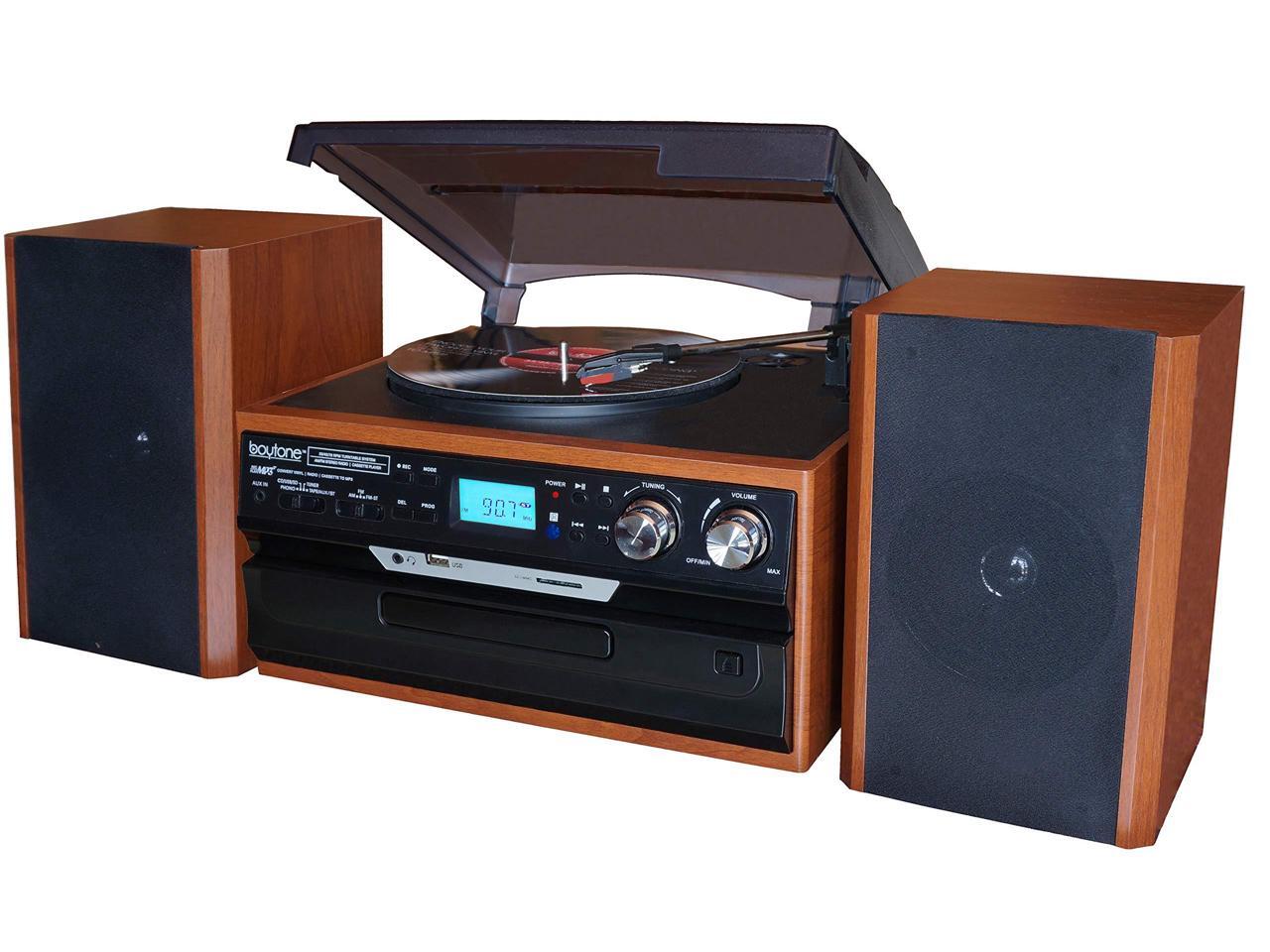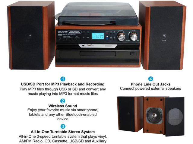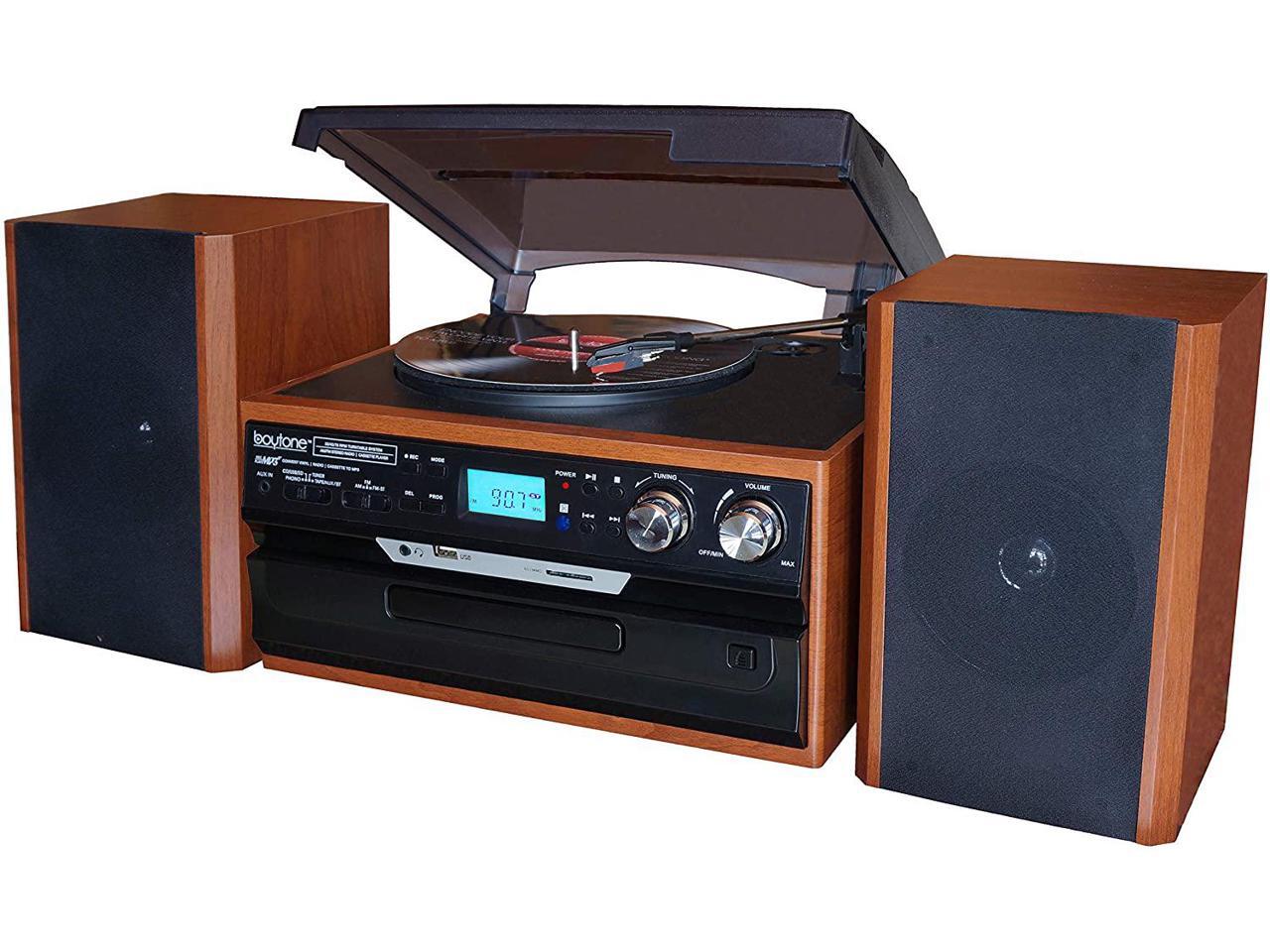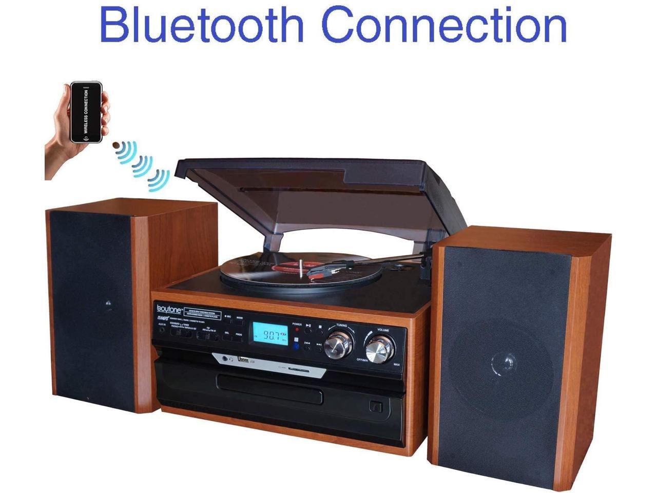 Boytone BT-24MB Bluetooth Classic Style Record Player Turntable with AM/FM Radio, CD/Cassette Player, 2 Separate Stereo Speakers, Record from Vinyl, Radio, and Cassette to MP3, SD Slot, USB, AUX.