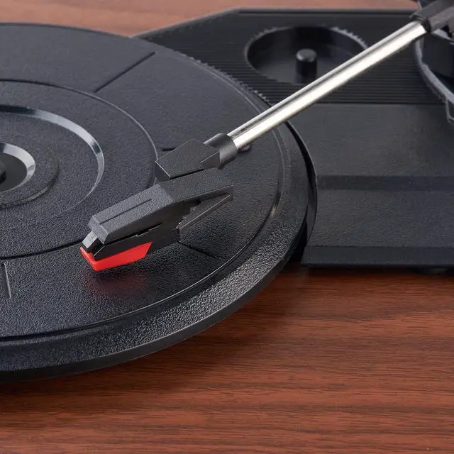 DIAMOND STYLUS NEEDLE: This phonograph record player includes a pre-assembled diamond stylus needle and one spare needle