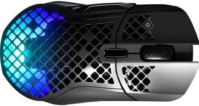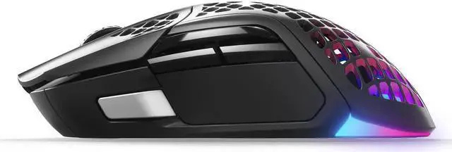 SteelSeries Aerox 5 Wireless - Holey RGB Gaming Mouse - Ultra-lightweight Water Resistant Design - 9 Buttons Bluetooth/2.4 GHz - 18K DPI TrueMove Air Optical SensorAerox 5 Wireless combines dazzling RGB with industury-leading design. Victory is in your hand with a lightning-fast 74g build shielded from dust and splashes with AquaBarrier. Easily connect with lag-free Quantum 2.0 Wireless enjoying superb 180-hour battery life, aiming using ultra-precise, 1-to-1 tracking with the TrueMove Air sensor.