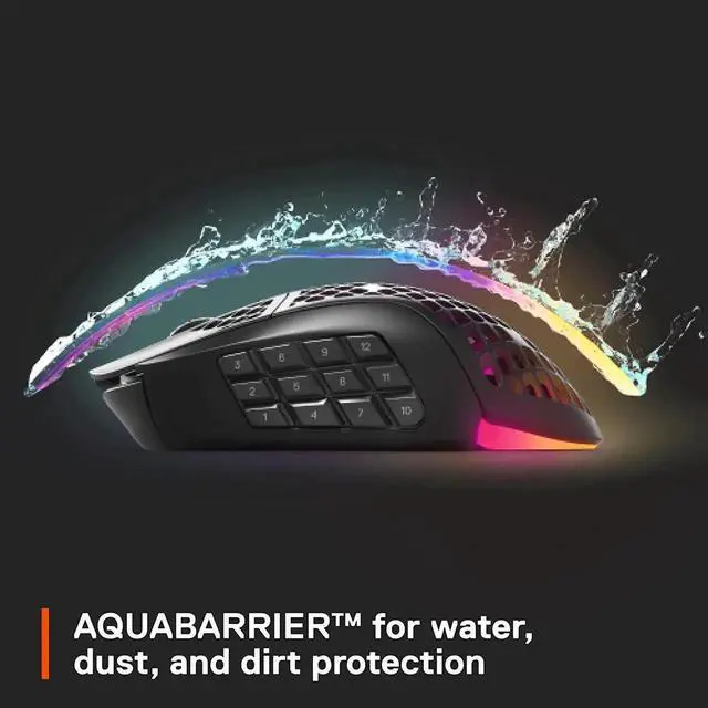 - AQUABARRIER Mouse interiors are shielded from water splashes, dust, and dirt, technology rated