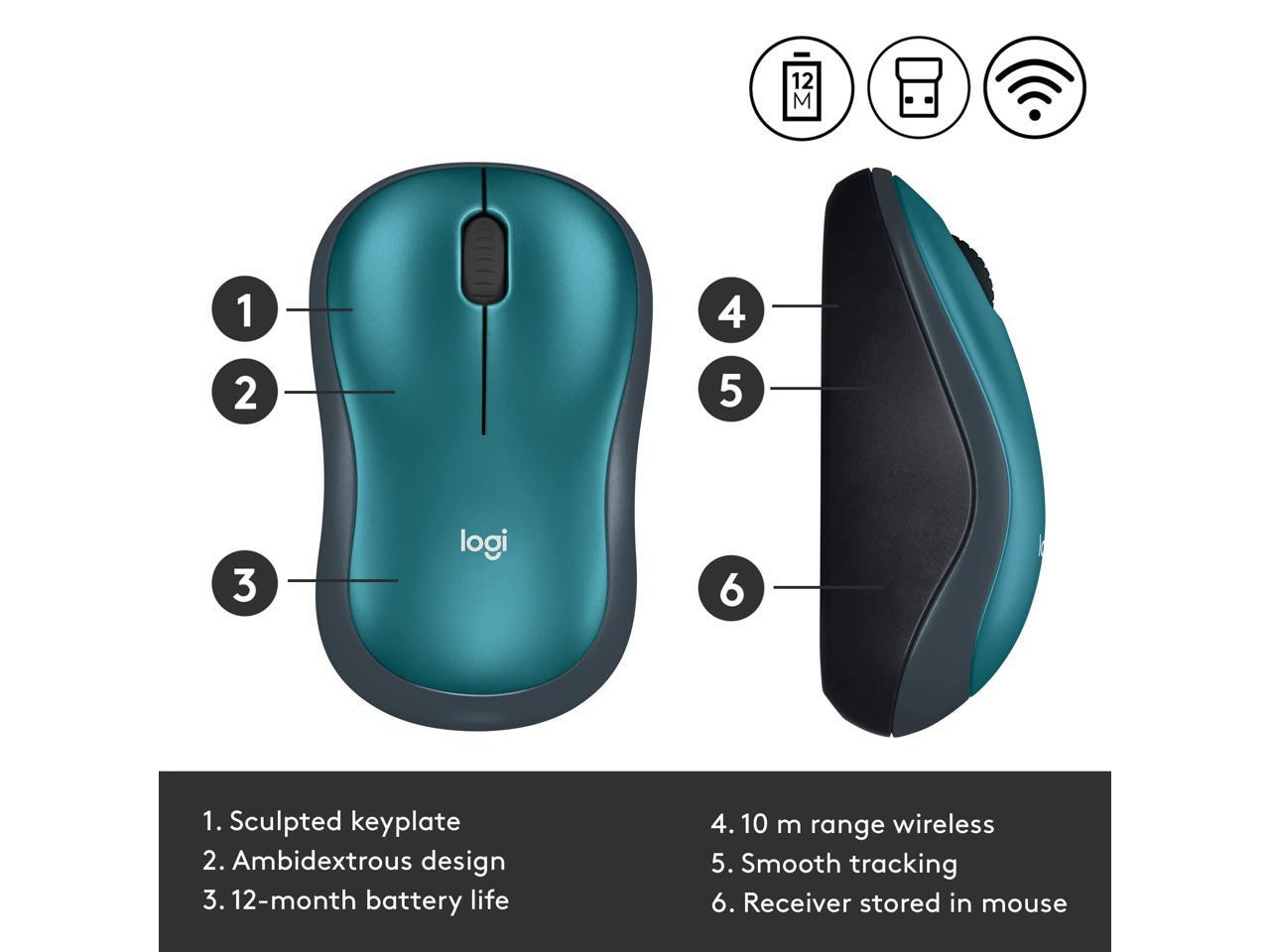 Logitech M185 Wireless Mouse, 2.4GHz with USB Mini Receiver, 12-Month Battery Life, 1000 DPI Optical Tracking, Ambidextrous, Compatible with PC, Mac, Laptop - Blue