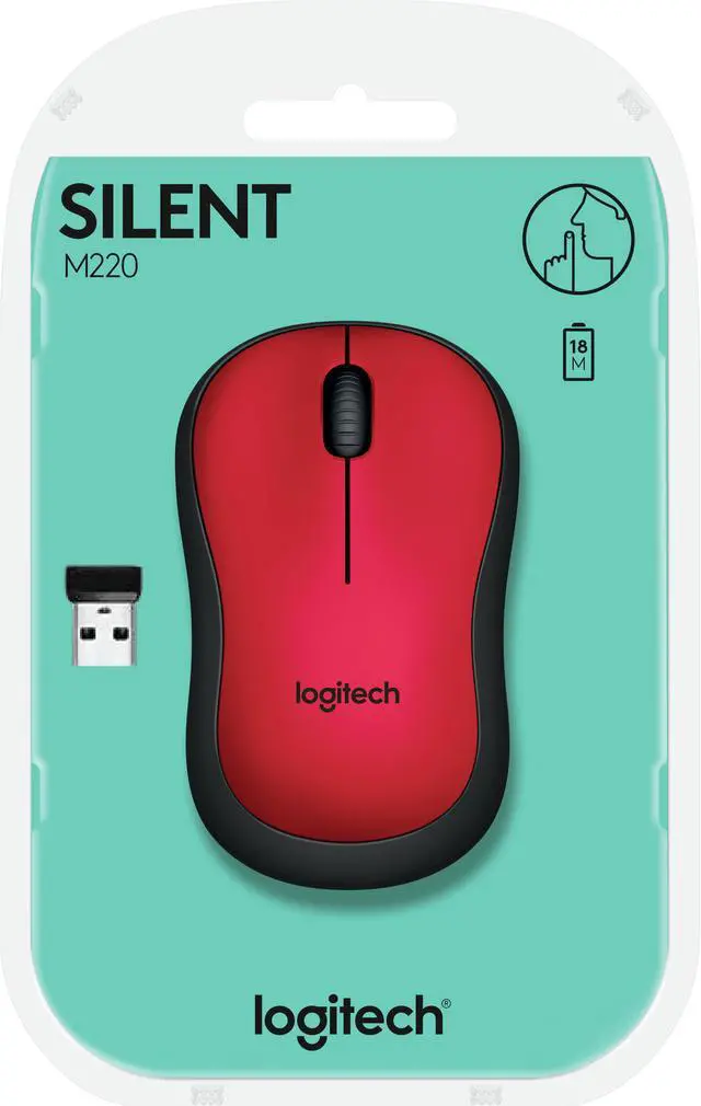Logitech M220 Silent - Mouse - optical - 3 buttons - wireless - 2.4 GHz - USB wireless receiver - red