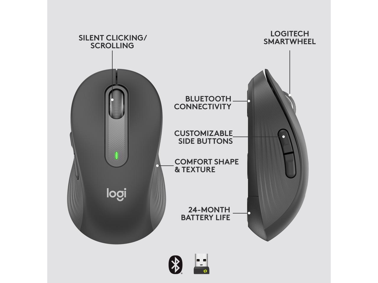 Logitech Signature M650 Mouse - Wireless - Bluetooth/Radio Frequency - Graphite - USB - 4000 dpi - Scroll Wheel - Medium Hand/Palm Size - Right-handed Only