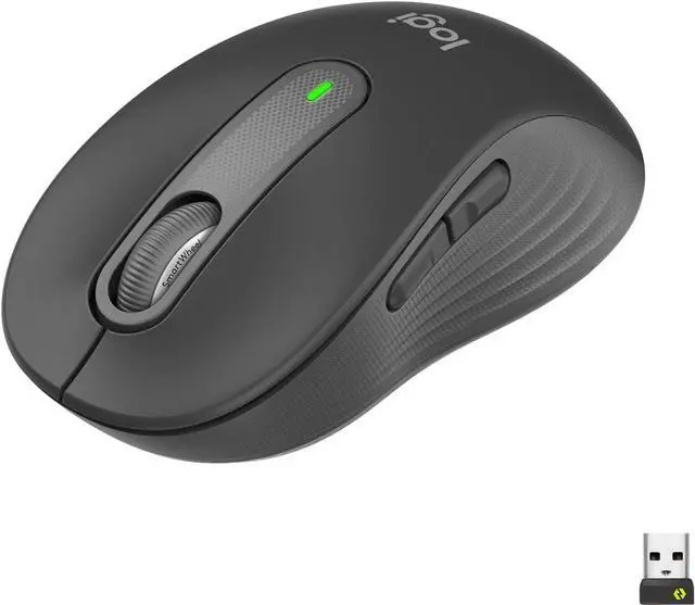 Included Items M650 Wireless Mouse USB Receiver 1 AA Battery User documentation Features Scroll smarter With Logitech Signature M650 Wireless Mouse you get line-by-line precision for documents and super-fast scrolling for long web pages; simply switch modes with a flick of the SmartWheel. The optimal fit for your hand This comfortable mouse is designed for small-to-medium sized hands, for the optimal fit. Upgrade your comfort This work mouse provides long hours of comfort thanks to a contoured shape, soft thumb area, and rubber side grips that keep your hand snug and in place.