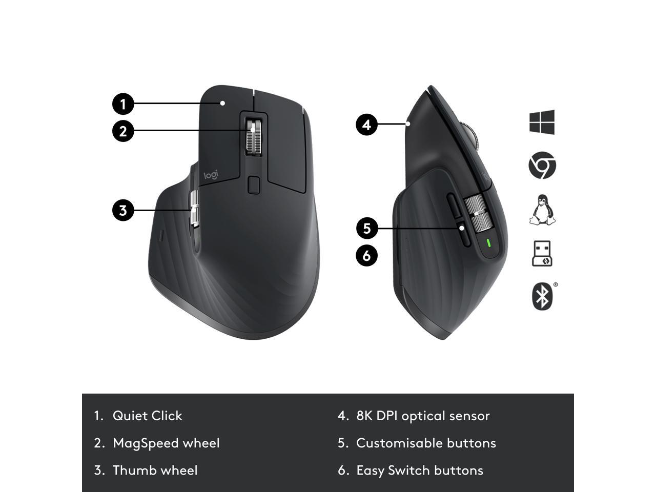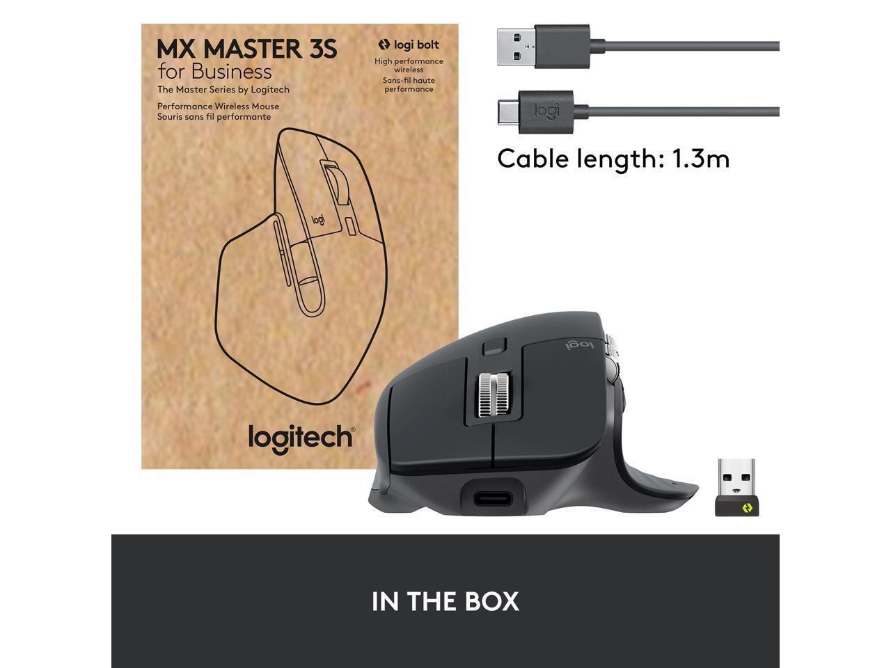 Logitech MX Master 3S for Business, Wireless Mouse with Quiet Clicks, 8K DPI, Secured Logi Bolt USB Receiver, Bluetooth, USB-C Charging, MagSpeed Scrolling, Windows/Mac/Chrome/Linux - Graphite