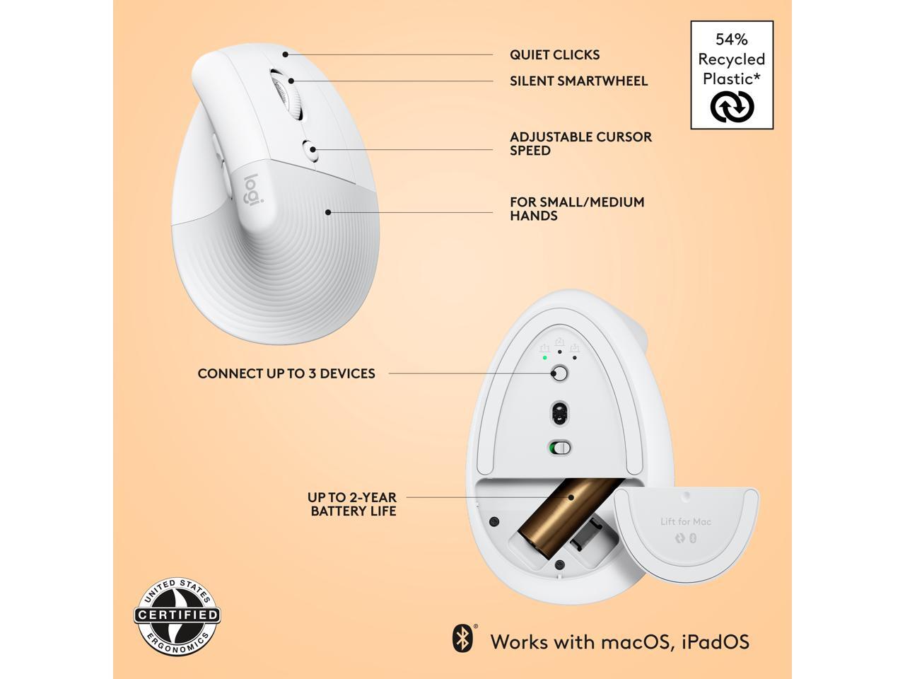 Logitech Lift for Mac Wireless Vertical Ergonomic Mouse, Bluetooth, Quiet Clicks, Silent Smartwheel, 4 Customisable Buttons, for macOS/iPadOS/MacBook Pro/ Air/iMac/iPad - Off White