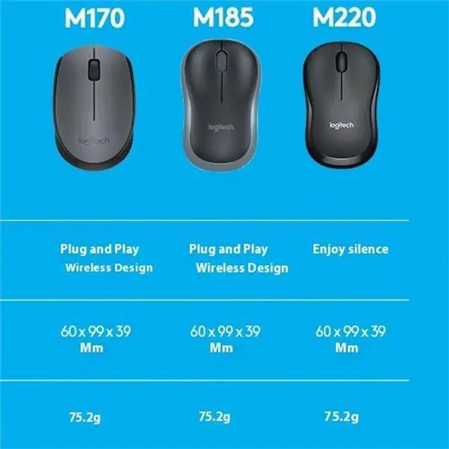 Noise Reduction 90%* Left/Right click, Center 1 volume levels are based on Logitech M220 vs Logitech M170. Left click volume level measured by independent lab at 1 meter distance.