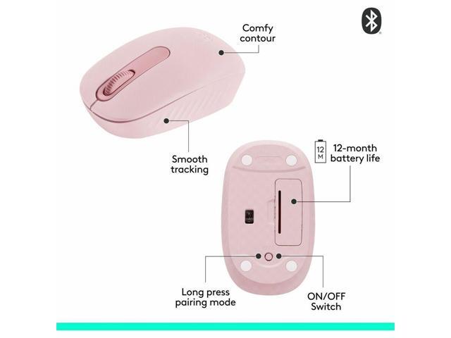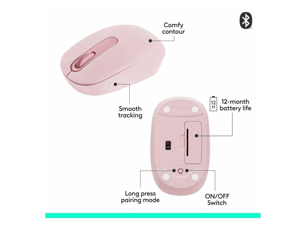 Logitech M196 Bluetooth Wireless Mouse, Compact and Portable Mouse for Laptops, Tablets and More, 12-Month Battery, Smooth Tracking, Compatible With PC and Mac, Windows and macOS (Rose) - Optical - Wi