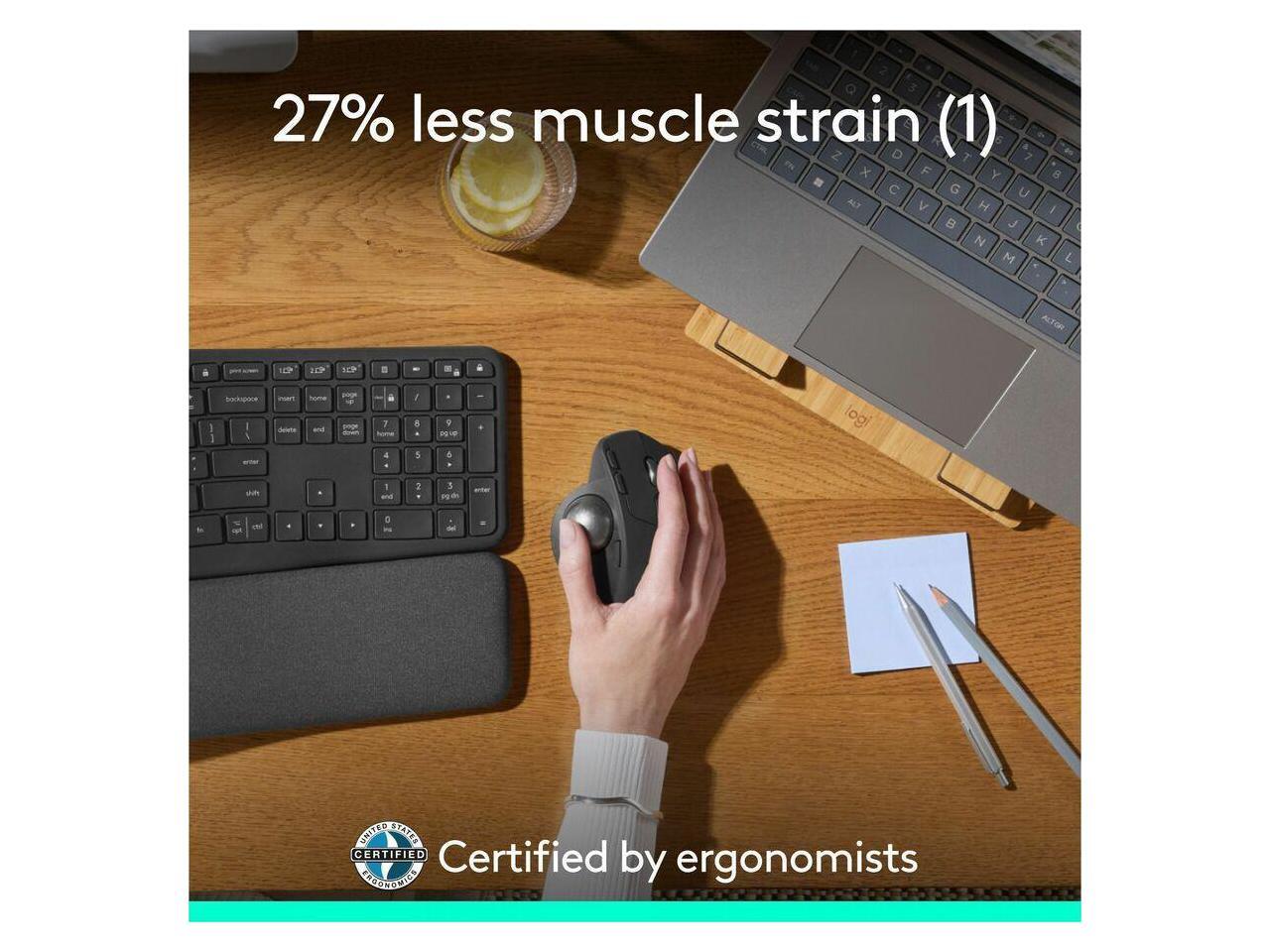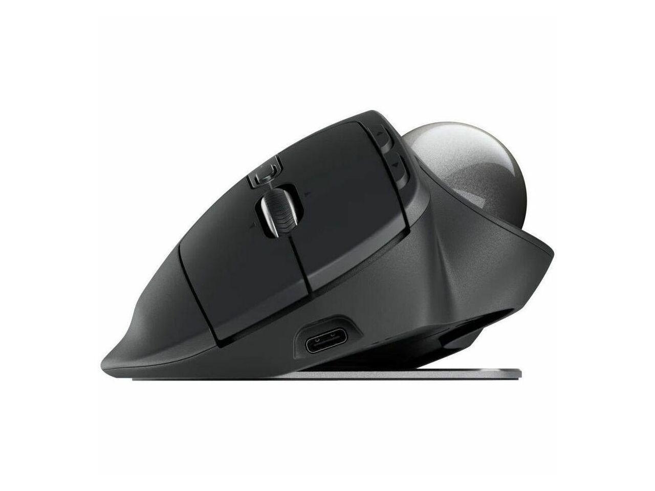 Logitech MX Ergo S Plus Advanced Wireless Trackball Mouse, USB-C Rechargeable Wireless Ergonomic Mouse With Bluetooth and Encrypted Dongle, 6 Programmable Buttons, for PC/Mac (Graphite) - Optical - Wi