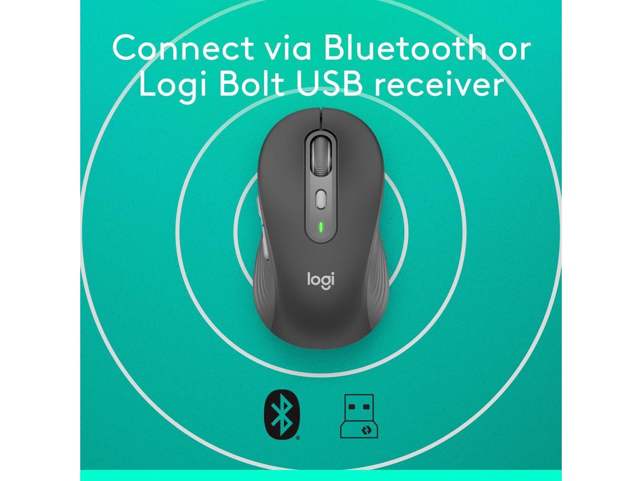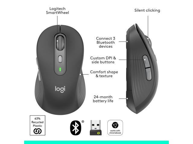 Logitech Signature Plus M750 L Mouse - Optical - Wireless - 32.81 ft - Bluetooth/Radio Frequency - 2.40 GHz - Graphite - USB - 2000 dpi - Scroll Wheel - 6 Button(s) - Large Hand/Palm Size - 1 x AA Bat