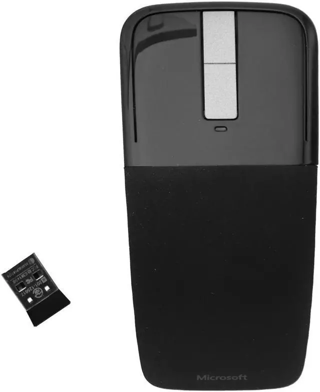 The black Microsoft Arc Touch Mouse is a unique mouse that features a flexible design. Rather than a button to turn it on and off, you simply curve to turn it on, and flatten to turn it off when you're done using it. Touch scrolling allows for intuitive navigation. Thanks to Logitech's BlueTrack technology, the mouse is able to be used on virtually any surface. Plus, the USB nano transceiver plugs into your computer and stays there. Or attach it magnetically in the mouse for safe keeping. For convenience, the mouse can be used in either your right or left hand.