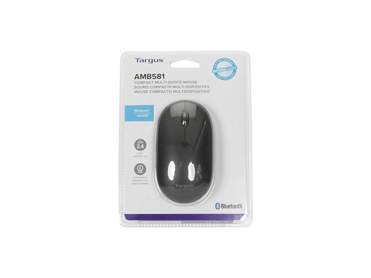 Targus Compact Multi-Device Antimicrobial Wireless Mouse - Wireless - Bluetooth/Radio Frequency - 2.40 GHz - Black - 3 Button(s) - Symmetrical