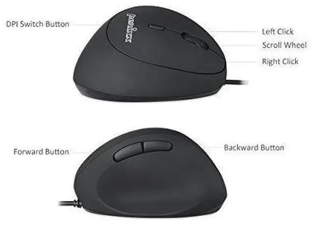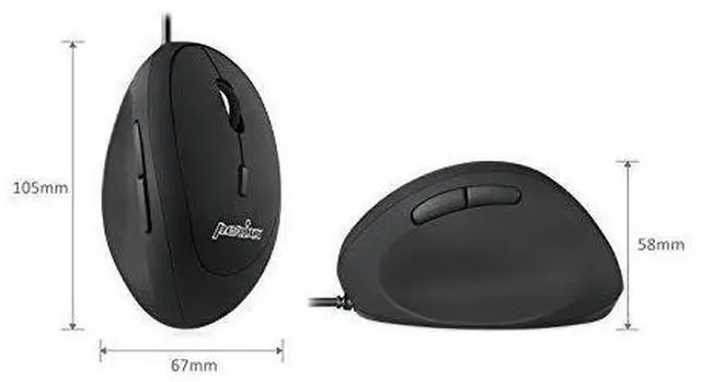 Brand: PerixxColor: BlackFeatures: Natural ergonomic vertical with right-handed design. Recommended to repetitive strain injuries (rsi) users and users work particularly Long periods on the computer Optical sensor and Built-in DPI switch button. You can switch DPI between 800/1600; Easy for you to bring it with when you are on the way. "Plug and play" mouse with USB interface Easy to start to use with standard setting function. High quality rubber coating surface. Compatible with Windows 7 8 and 10; wired USB connection Computer mice ergonomic vertical mouse wired wireless Platform: Windows XPPublisher: Perixx Computer GmbHWarranty: 2 Years Limited WarrantyDetails: Mini-Size Big-Talent Choosing a suitable mouse size is especially important for people who use are heavily-relied on computer on a daily basis. PERIMICE-519’s compact size is ideal for Small (15cm or less) and Medium (15cm - 17.8cm) hand size. 2-level DPI easy switch (800/1600). 6 button design includes two Internet browsing side buttons. The easier to reach the buttons the less stress your fingers have to bare. 1.8m durable cable giving you more flexibility. Wrist Protector Ergonomic vertical design is the wellbeing gatekeeper for you. Slightly tilted design fits the most natural position of human wrist. Height and button layout are precisely calculated to minimize the amount of finger and wrist movement releasing our daily muscle stress and prevent RSI (Repetitive Strain Injury) syndrome. Eye-Catcher Silent click buttons equipped rubber coating all in one adorable mini size providing an extraordinary grip feeling and comfort using experience. PERIMICE-519’s chic streamline outlook in black is here to keep you elegant and classic wherever you go. System requirement • Windows XP Vista 7 8 10 or later • USB Port Specification • Dimension: 105x67x58 mm • Sensor: Optical • DPI: 800/1600dpi • Size: Small/Medium • Number of Buttons: 6 • Scroll wheel with middle click: Yes • Silent clicks: Yes • Cable length: 1.8 meters • How to pick right ergonomic mouse? Know about your hand size. Simply take a measurement from the base of your wrist / palm to the top of your middle finger. Which size? Small: 15 cm or lessMedium: 15-17.8 cmLarge: 17.8 cm or moreEAN: 4049571001678