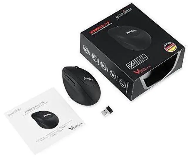 Brand: PerixxColor: BlackFeatures: Natural ergonomic vertical with right-handed design. Recommended to repetitive strain injuries (rsi) users and users work particularly Long periods on the computerOptical sensor and Built-in DPI switch button. You can switch DPI between 800/1200/1600; "Plug and play" mouse with nano USB receiverBuilt in power on/off switch button and power saving function. One AA battery needed (battery is not included in the package). nano USB receiver with storage compartmentCompatible with Windows 7 8 and 10; wireless 2.4G connectionComputer mice ergonomic vertical mouse wired wirelessPlatform: Windows XPPublisher: Perixx Computer GmbHWarranty: 2 Years Limited WarrantyDetails: Mini-Size Big-TalentChoosing a suitable mouse size is especially important for people who use are heavily-relied on computer on a daily basis. With compact size is ideal for Small and Medium hand size. 3-level DPI easy switch. 6 button design includes two internet browsing side buttons. The easier to reach the buttons the less stress your fingers have to bare. Wireless stable connection giving you more flexibility to arrange an organized workplace. Wrist Protector Ergonomic vertical design is the wellbeing gatekeeper for you. Slightly tilted design fits the most natural position of human wrist. Height and button layout are precisely calculated to minimize the amount of finger and wrist movement releasing our daily muscle stress and prevent Repetitive Strain Injury syndrome. Eye-Catcher Silent click buttons equipped rubber coating all in one adorable mini size providing an extraordinary grip feeling and comfort using experience. It’s chic streamline outlook in black is here to keep you elegant and classic wherever you go. System requirement • Windows XP Vista 7 8 10 or later • USB Port Specification • Dimension: 105x67x58 mm • Sensor: Optical • DPI: 800/1200/1600 • Size: S/M • Number of Buttons: 6 • On/off button: Yes • Silent clicks: Yes • Scroll wheel with middle click: Yes • Battery: one AA Battery. (not included in package) • Wireless operating distance: 10 m • Wireless technology: 2.4GHz • How to pick right ergonomic mouse? Know about your hand size. Simply take a measurement from the base of your wrist / palm to the top of your middle finger. Small: 15 cm or lessMedium: 15-17.8 cmLarge: 17.8 cm or moreEAN: 4049571001685