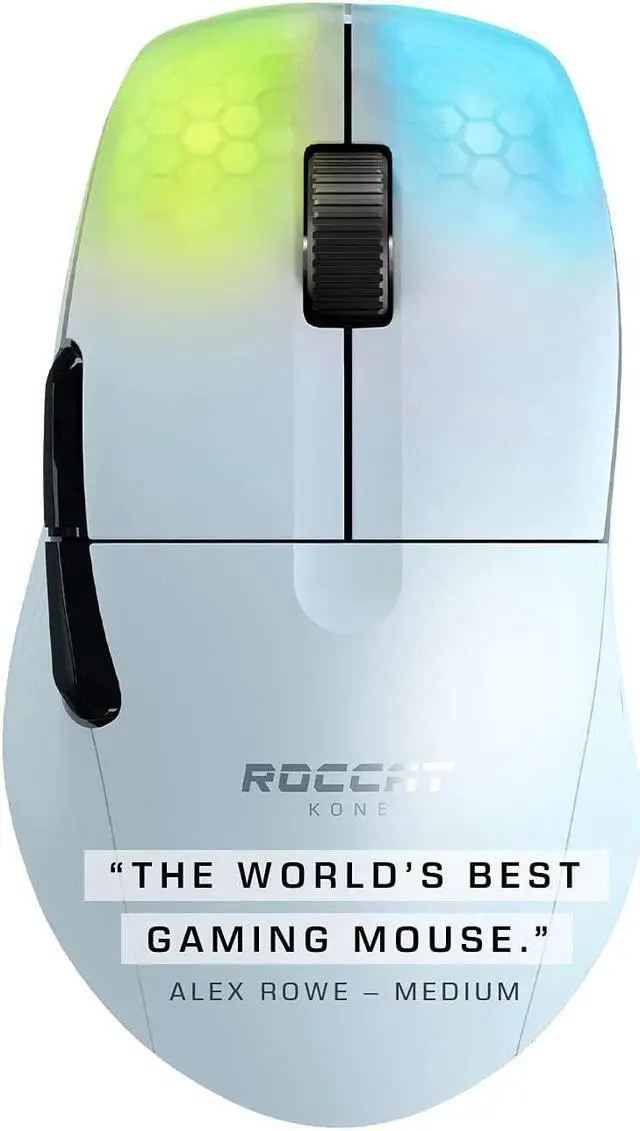 ROCCAT BIONIC SHELL - The solid, lightweight honeycomb shell with a translucent fade on the main clicks, provides the perfect showcase for vivid AIMO 16.8 million color RGB lighting