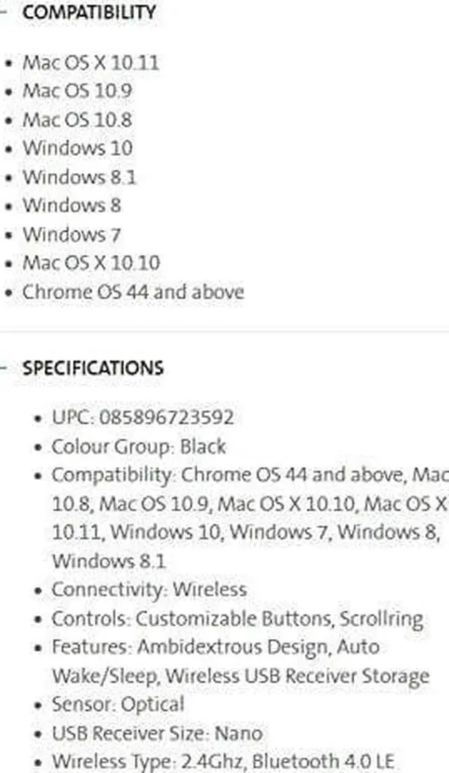 Features: Wireless connection via Bluetooth 4.0 LE or USB Nano receiver
