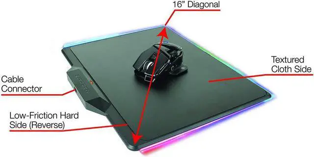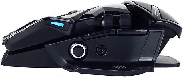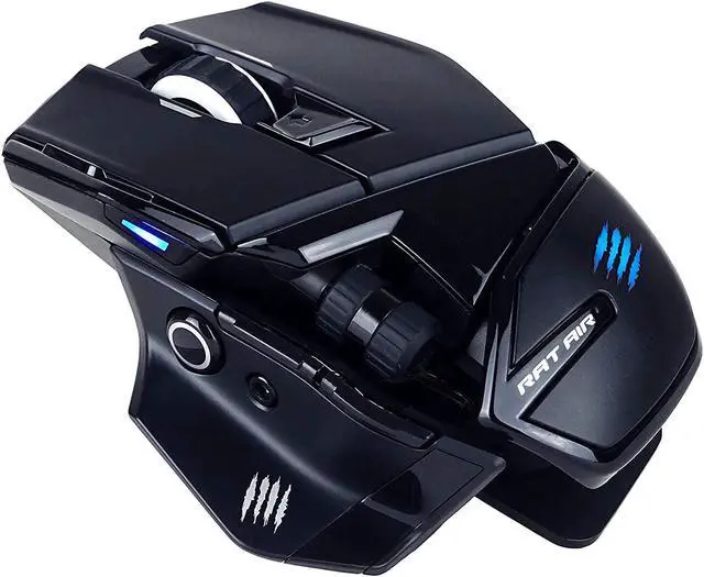 Create the perfect grip with the adjustable palm rest while the extended wing thumb rest keeps your hand comfortable, even through hours of game play. Low friction glide feet provide smooth, fast movement without dragging. And with industry-leading OMRON switches, the R. A. T. Air can keep up with the even most furious clicker, with a 50 million click lifetime. \u2022Unlimited power - mouse is powered via magnetic field using activation board; No internal battery and no battery needed - activation board charges and powers mouse \u2022Wireless or wired connection - mouse can be used wirelessly with the included activation board or wired with a cable connection \u2022Dual-sided activation board - textured cloth side and low-friction hard side designed to fit a variety of playstyles \u202216\u201d diagonal of available playing space on activation board; dimensions: 14.06 in x 11.18 in x. 24 in \u2022Multi-button functionality for maximum precision and control: Scroll wheel, Left click oRight click, DPI button, Forward, Backward, Precision button, Profile button oSide scroll wheel - customize within software for extra functionality \u2022Adjustable DPI - up to 12000; PIXART PMW3360 Sensor \u2022Precision button instantly increases or decreases sensitivity - ideal for in-game sniping \u2022F. L. U. X. software lets you customize your settings - create unlimited user profiles, program buttons, customize lighting and more; works with Windows Operating Systems only, available for download. \u2022Store your favorite 4 user profiles on mouse using on-board memory - quickly switch using Profile button; Industry-leading OMRON switches - 50 million click lifetime \u2022Adjustable palm rest - side button releases palm piece for customizable comfort; Extended wing thumb rest - ergonomically designed to be comfortable even through hours of game play \u2022Low friction PTFE glide feet provide smooth, fast movement without dragging \u2022Chameleon lighting strip - lighting strip illuminates activation board and is configurable using included software \u2022Mad Catz Gaming accessories come with a 2-Year Limited warranty