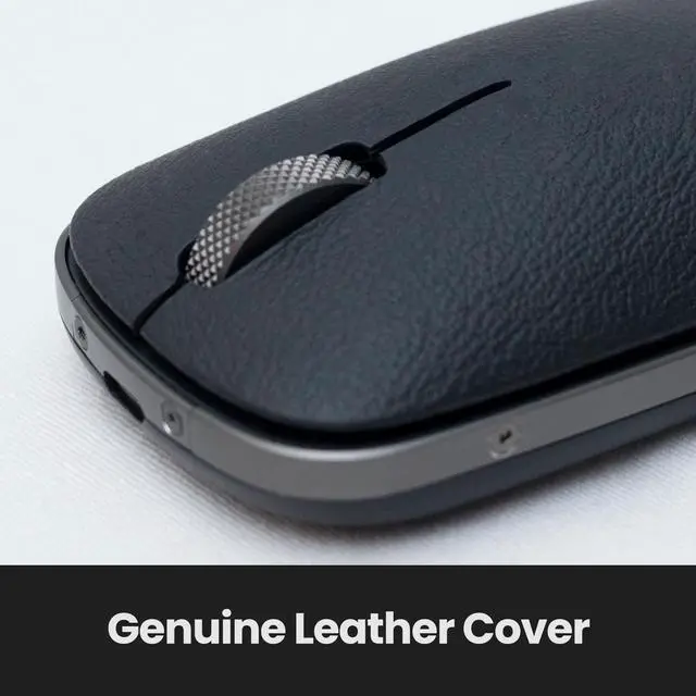 Interchangeable Top Cover The leather top-cover can be changed after excessive use or to achieve a different look. Tracks Virtually Anywhere The PixArt PAW3805 sensor is designed to track flawlessly on virtually any surface, including glass and other high-gloss materials. Long Usage Time Built-in is a high-capacity 1000mAh Lithium-Ion rechargeable battery. Usage time is up to 4 months on a single charge. USB-C Charging Port Charging the mouse is simplified with a USB Type-C port. Unlike older USB ports, the connector doesn t have to be inserted in only one direction.