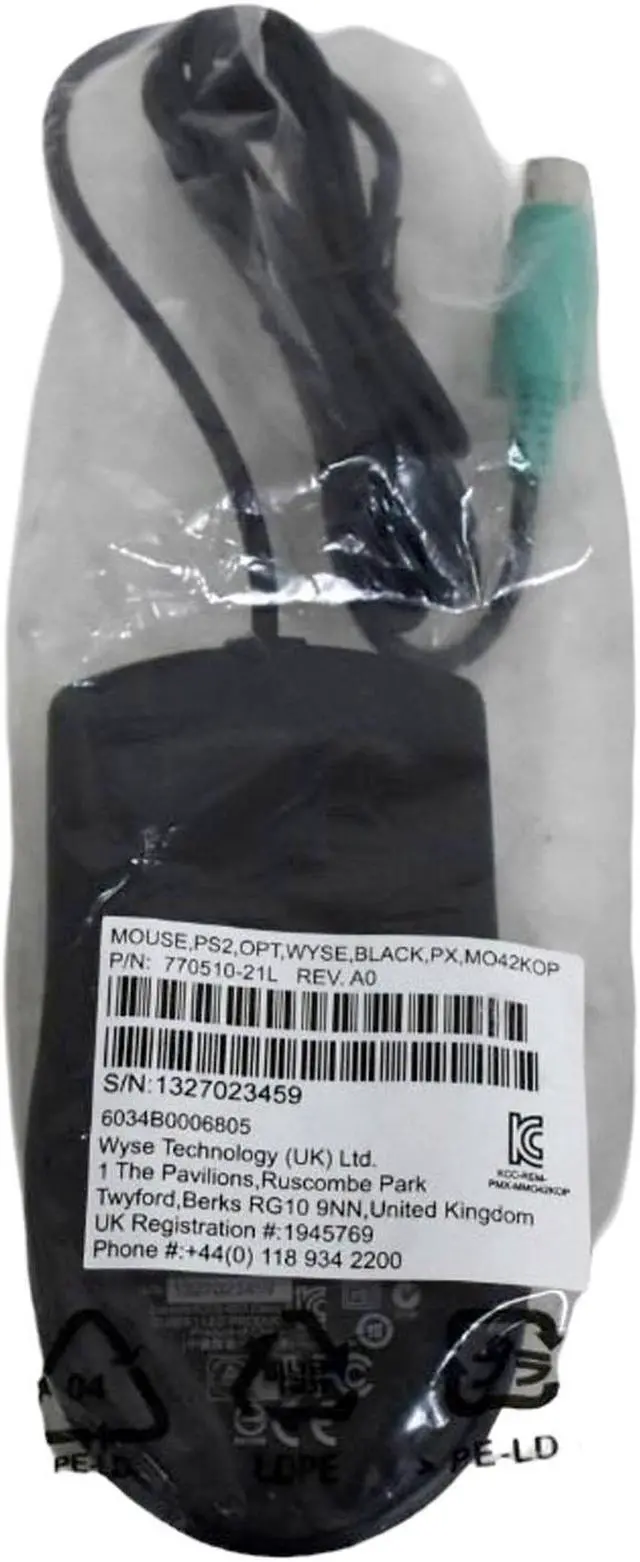 WYSE MO42KOP Black PS-2 Scroll Optical Mouse 770510-21L 85FHW is a compact and reliable PS/2 optical mouse designed for WYSE thin clients and other compatible systems. It features a scroll wheel for easy navigation and an ergonomic design for comfortable use. The optical sensor provides accurate tracking, making it suitable for basic computing tasks.