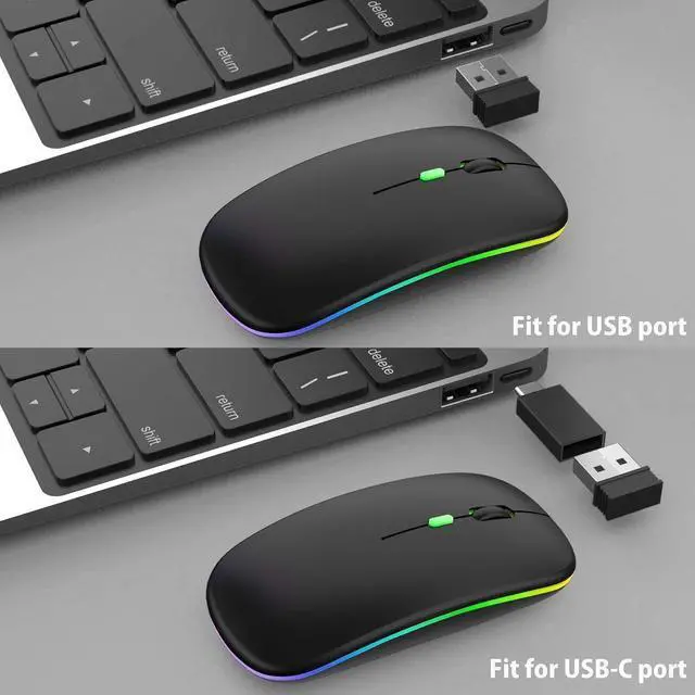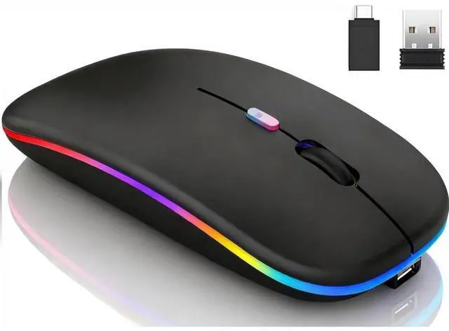 Wireless Bluetooth 5.2/3.0 & 2.4GHz USB Rechargeable Mouse - for MacBook Air/Mac/Pro, Laptop, PC (7-Color LED)