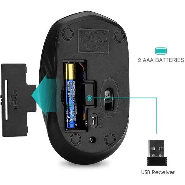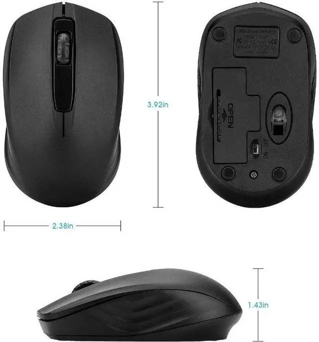 Wireless Mouse, 2.4G Portable Computer Mice for PC, Laptop, Windows, Office, Included Wireless USB Dongle (Black)