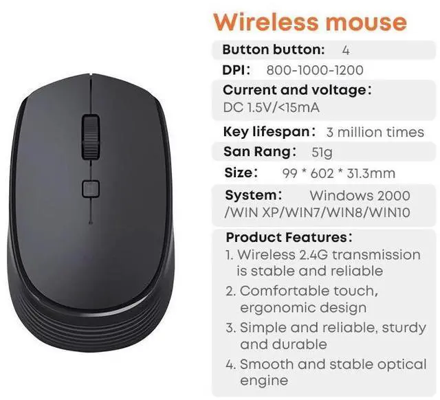 3 Adjustable DPI Modes: 1000/1200/1600 DPI optional, free speed control for precise cursor positioning; adjust via pressing left + middle buttons simultaneously.