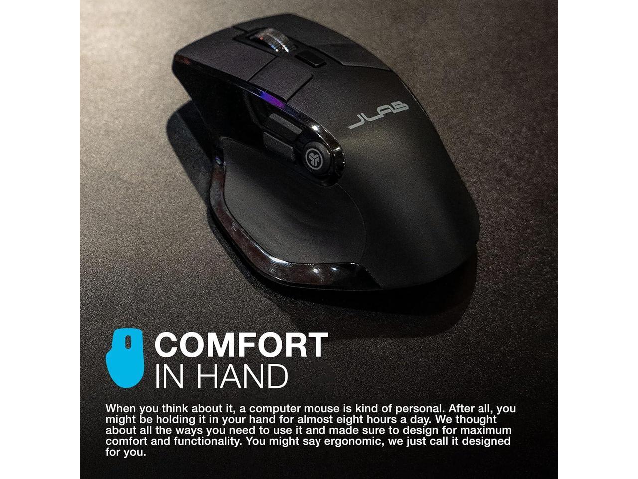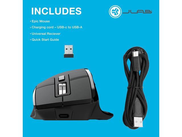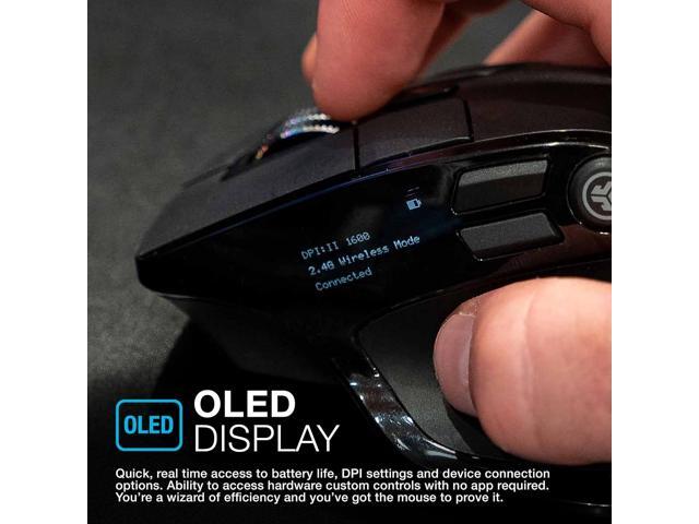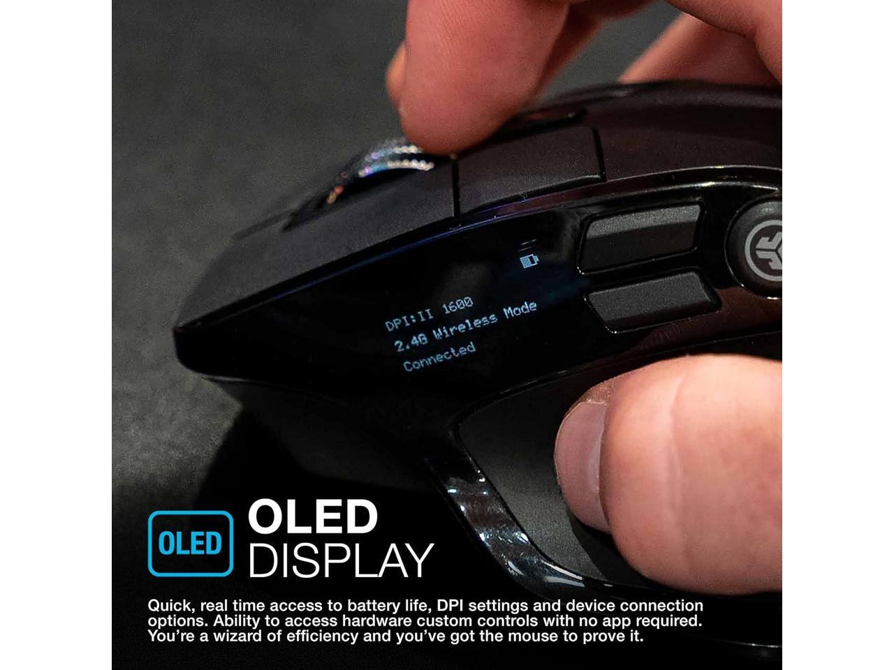 JLab Epic 2.4G Wireless Optical Mouse, 1200 / 1600 / 2000 / 2400 DPI, OLED Display, Customizable Buttons via App, 9 Buttons for Laptop, Desktop, PC, Macbook, Black, 2 Year Warranty