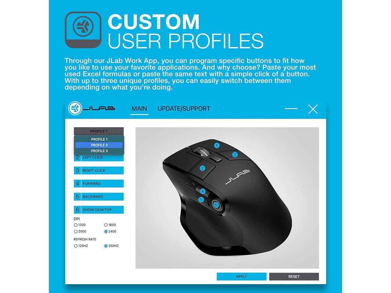 • CUSTOM USER PROFILES: Through our JLab Work App, you can program specific buttons to fit how you like to use your favorite applications. And why choose? Paste your most used Excel formulas or paste the same text with a simple click of a button. With up to three unique profiles, you can easily switch between them depending on what youre doing.