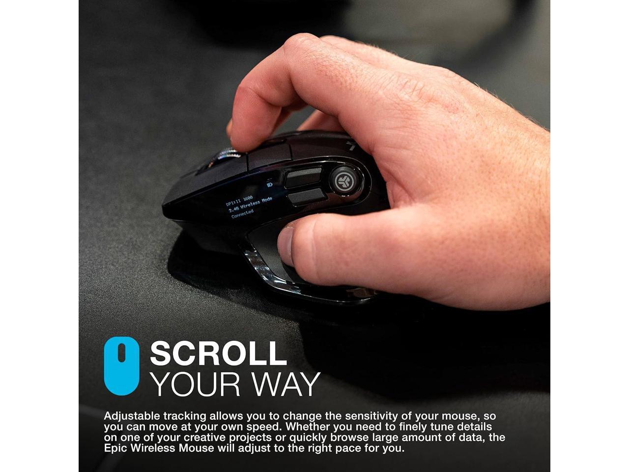 • SCROLL YOUR WAY: Adjustable tracking allows you to change the sensitivity of your mouse so you can move at your own speed. Whether you like to click around on turbo or leisurely make your way down a page, the Epic Wireless Mouse will adjust to the right pace for you.