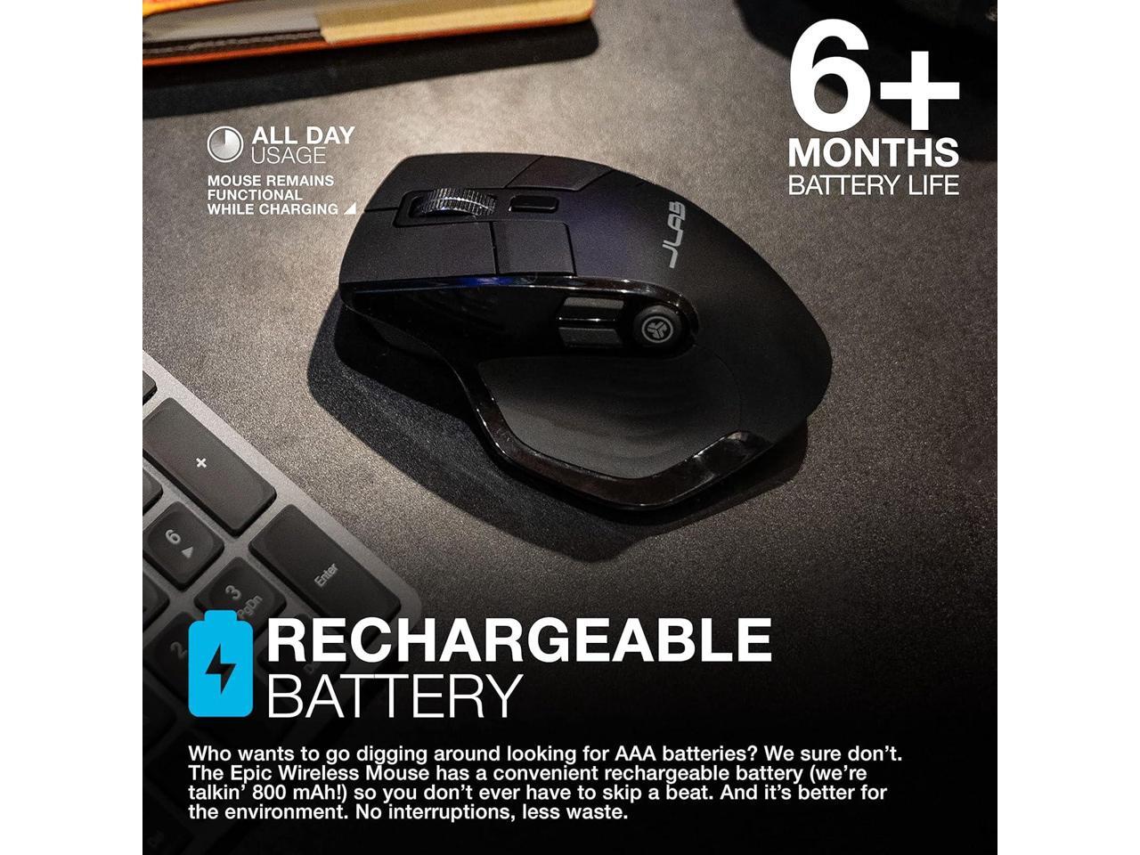 • FLEXIBLE CONNECTIONS: The Epic Wireless Mouse is compatible with threecount em, three!device connection options. You can pair with nearly any type of device using Bluetooth 5.2, or USB. We hate pairing confusion too, so we made it super easy for you to switch between saved devices.