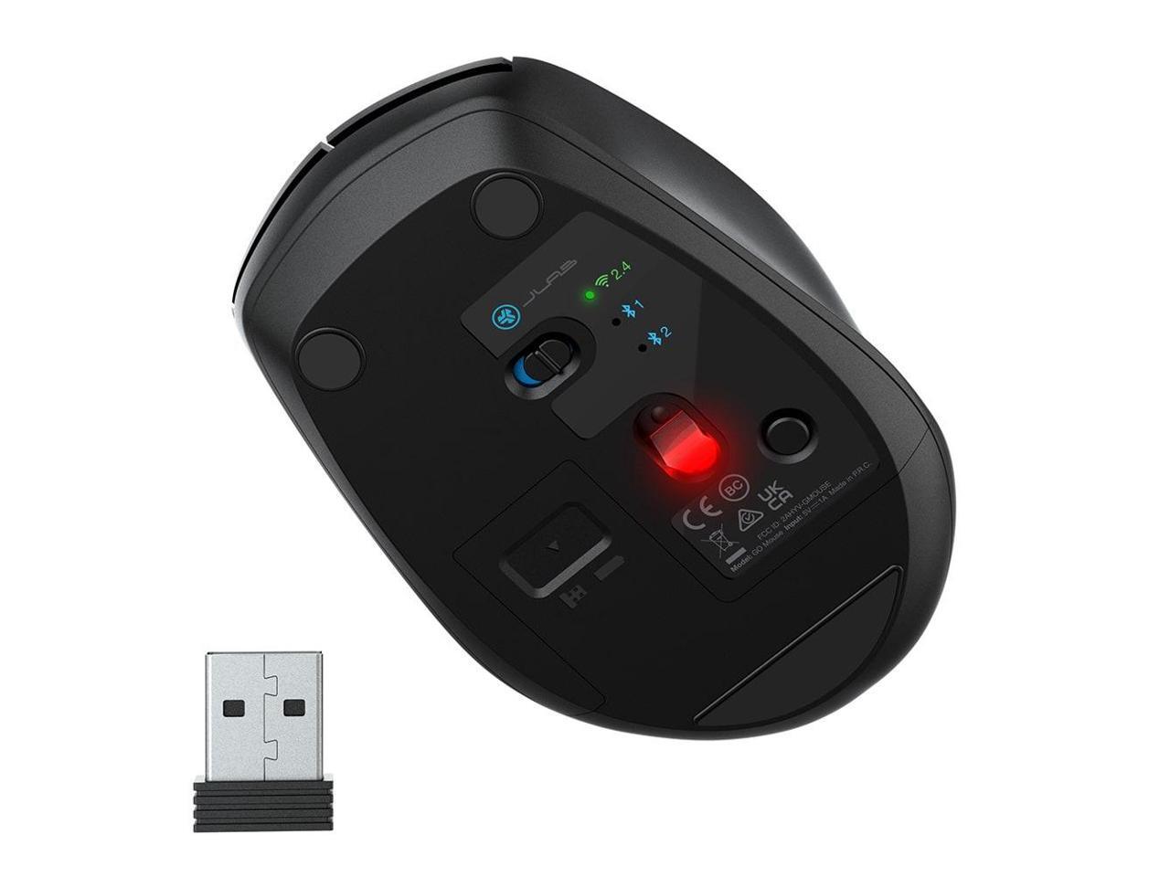 JLab Go Wireless Mouse |Connect via Bluetooth/USB Dongle | 4 Button Clicks | Easy Device Switch | Ultra Compact Design | AA Battery Powered | Mac OS | Windows | Chrome OS| Right + Left Handed | Black