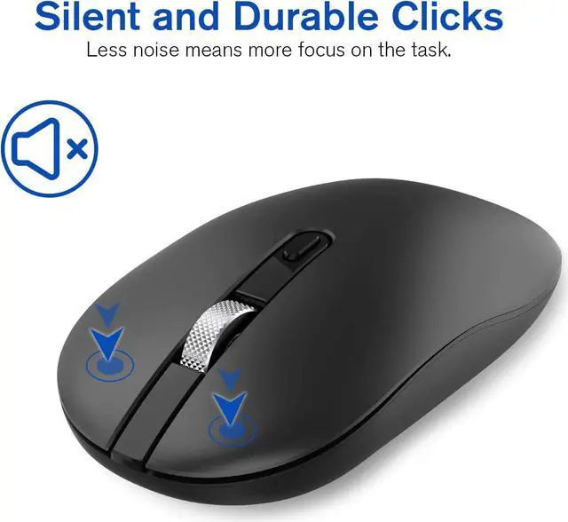 ?Noiseless Mouse. Silent click, mute button reduces noise, helps you focus on work/study, and don't disturb others. 3-level adjustable DPI (800/1200/1600) can meet the precision requirements of different screen sizes and different scenes. The advanced control chip helps the computer mouse cursor move flexibly and improves your work efficiency.