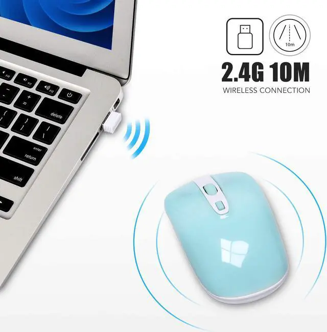 ?3 ADJUSTABLE DPI 800,1200,1600 DPI, easily change the cursor sensitivity depending on your activity. Computer mouse comes with a Nano receiver (stored in the back of the wireless mouse with magnetic force). No need any driver, and you can plug and play the wireless mouse for laptop directly.