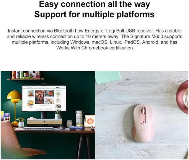 • Connection type: Logitech Bolt USB receiver, Bluetooth low energy technology