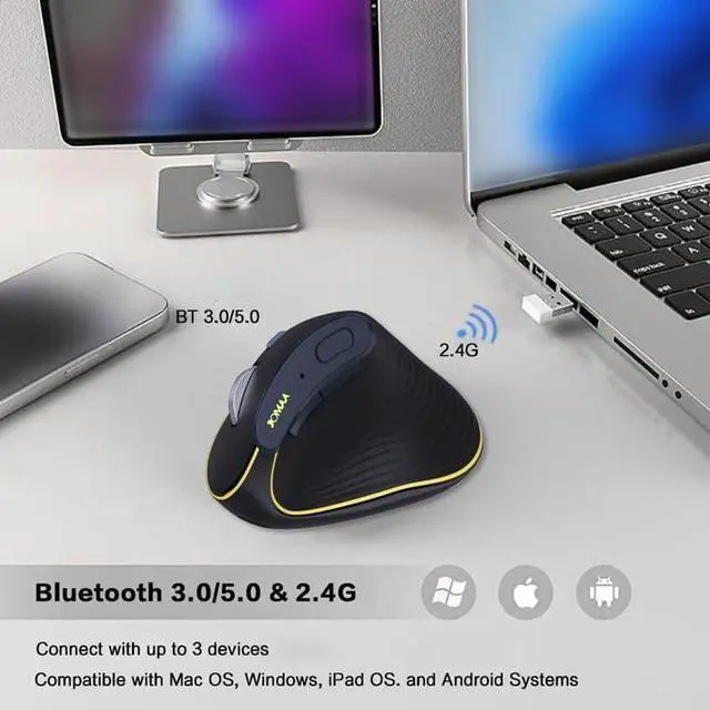 | Features | Triple-Mode Connectivity & Multi-Device Control: This mouse has three connection channels, 1 wireless 2.4G usb connection channel, 1 Bluetooth direct connection, and 2 Bluetooth direct connections. The three channels connect three devices separately, and different devices can be controlled according to switching different channelsTriple-Mode Connectivity & Multi-Device Control: This mouse has three connection channels, 1 wireless 2.4G usb connection channel, 1 Bluetooth direct connection, and 2 Bluetooth direct connections. The three channels connect three devices separately, and different devices can be controlled according to switching different channels Silent mouse has 4 adjustable CPI: This Bluetooth mouse has 5 adjustable CPI levels (1000-1600-2400-3200-4000), which can be switched to use different DPI in different scenarios to meet different needs Rechargeable: The mouse has a built-in 500 mAh rechargeable battery, and when the mouse is low, the red light will flash continuously to remind you to charge Widely Compatible with: Widely Compatible with Windows 2000/ME/XP(x64)/Vista/7/8/10/Mac OS X(over V10.4)/Linux. |