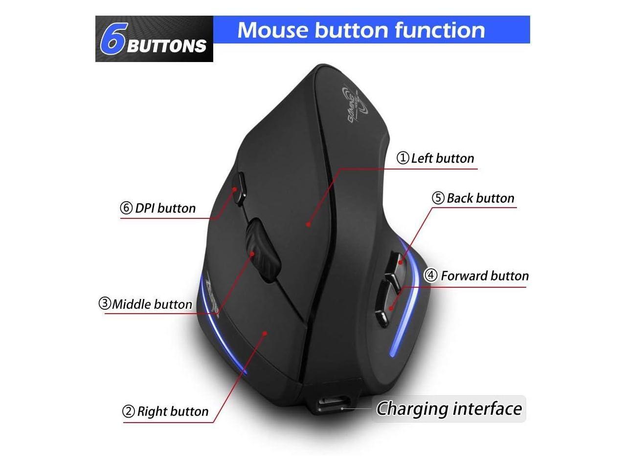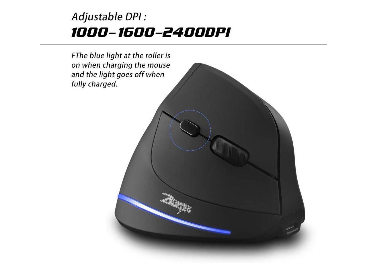 Zeerkeer Wireless Vertical Gaming Mouse 2.4G USB Rechargeable Ergonomic Vertical Mouse with 3 Adjustable DPI(1000/1600 /2400) and 6 Buttons for PC, Desktop, Laptop