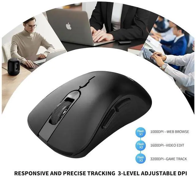 3-Level DPI Precision Control:Switch between 1000/1600/3200 DPI on demand for pixel-perfect cursor accuracy on wood, plastic, and fabric surfaces (Note: Not optimized for glass surfaces)