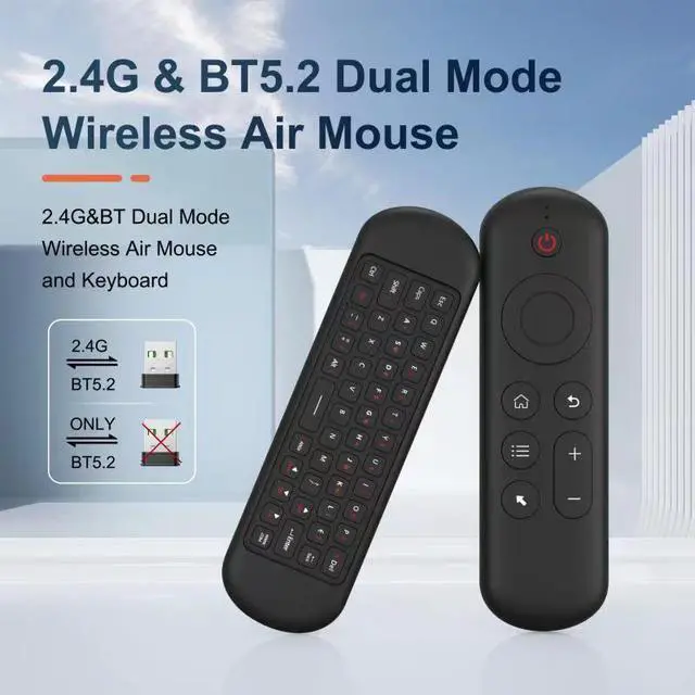 BT 5.0 MODE: Before using this device, first you must turn on the BT function of thelain device. Then long press " OK + Return keys, when the LED turns to flashhe product enters the pre pairing. Click add search new devices on the main device to find this airemotes name (