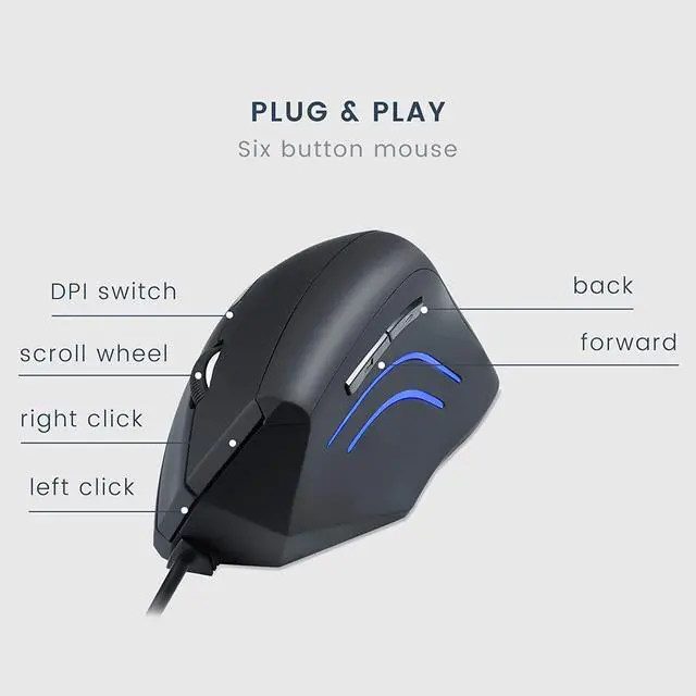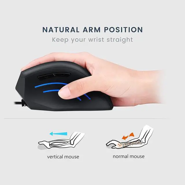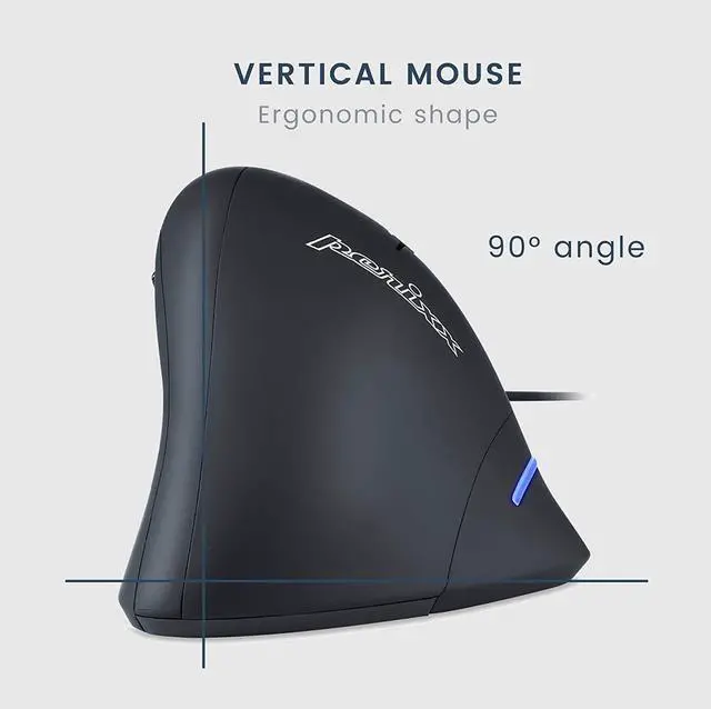 Perixx PERIMICE-508, Wired Programmable Vertical Ergonomic Mouse - 1000/1600 dpi - 5 Programmable Button - Natural Ergonomic Vertical Right handed Design