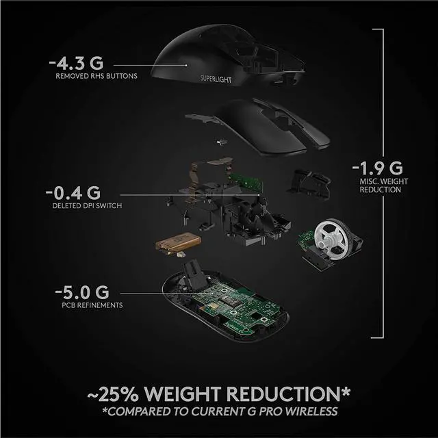 Logitech G PRO X SUPERLIGHT Wireless Gaming Mouse, Ultra-Lightweight, HERO 25K Sensor, 25,600 DPI, 5 Programmable Buttons, Long Battery Life, Compatible with PC / Mac - Black