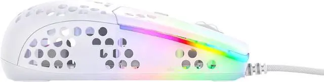 Ultra-light cable gaming mouse: Glides effortlessly thanks to PTFE gliding surface with rounded edges, the casings shape and perforated structure ensure a more stable grip and good air circulation