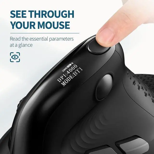 [See Through Your Mouse] The world's 1st vertical mouse with OLED screen, read the essential parameters at a glance. Checking the battery capacity, DPI level, and connection mode instead of via the software
