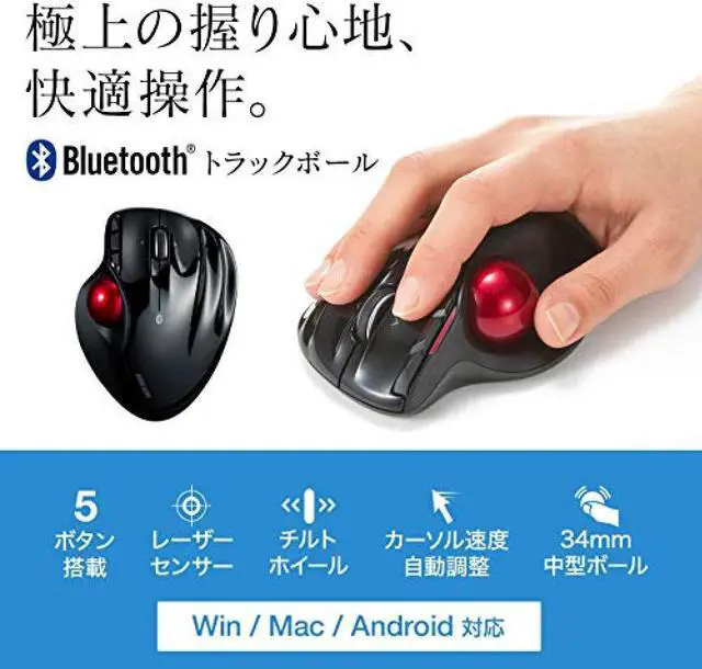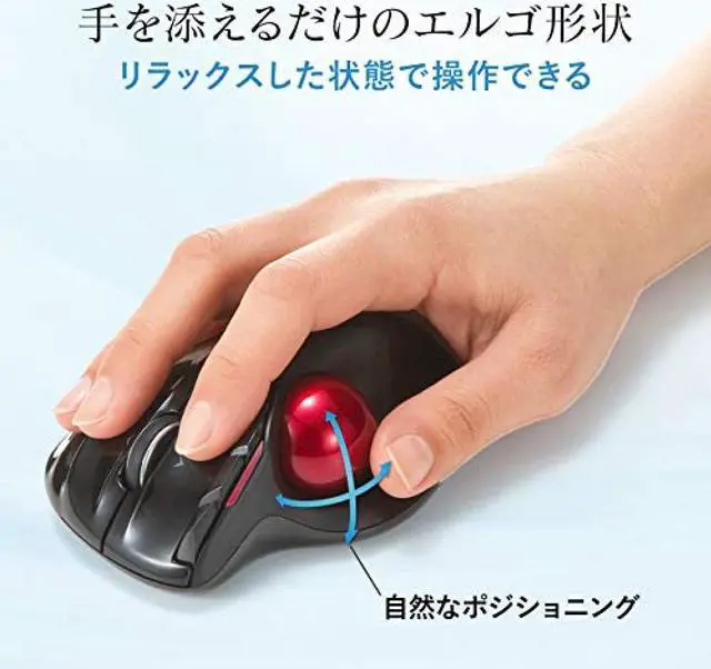 • An ergonomically shaped trackball that fits just by lightly touching the palm of your hand. It is a thumb operation type that can be used in a relaxed state without force.