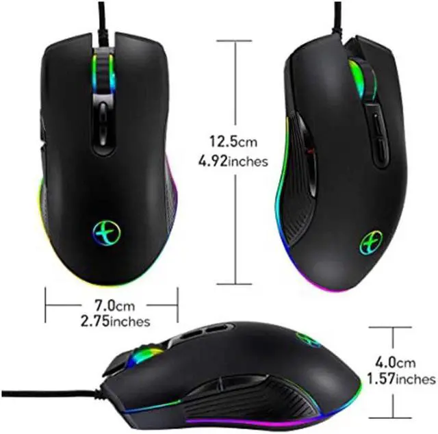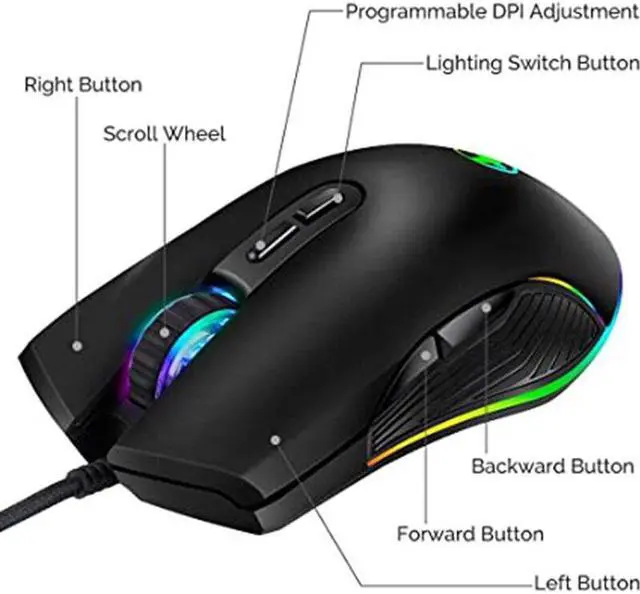 4 RGB Backlit Gaming Mice: The pc mouse with 4 kinds RGB light mode and unique side flow lighting effect to meet your different style of game needs. You could adjust different lighting modes and switch off the light by pressing the lighting switch button.