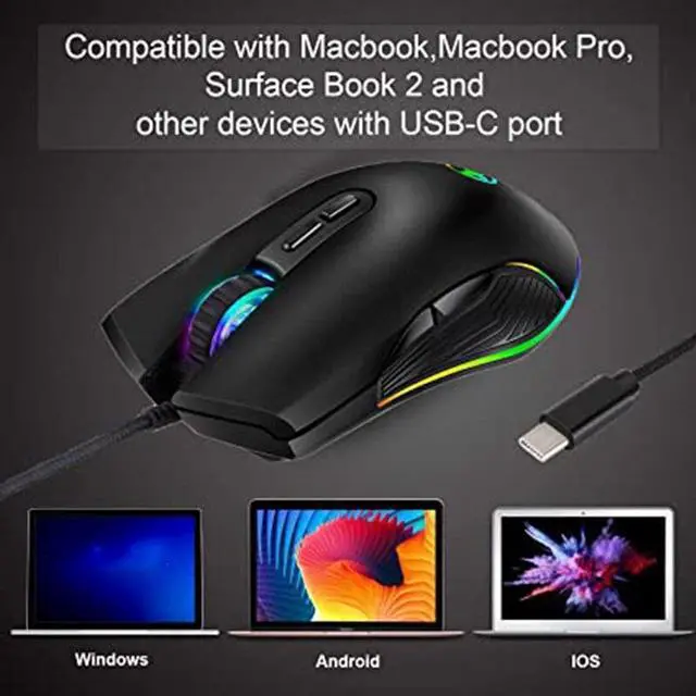 Type C Compatibility: The USB C Mouse is compatible with all devices which have a USB C port, perfectly works with Apple Macbook 12 inch, Macbook Pro 2016 / 2017, Chromebook, Type C smartphone/tablet, laptop or any other device with a Type-C connector.