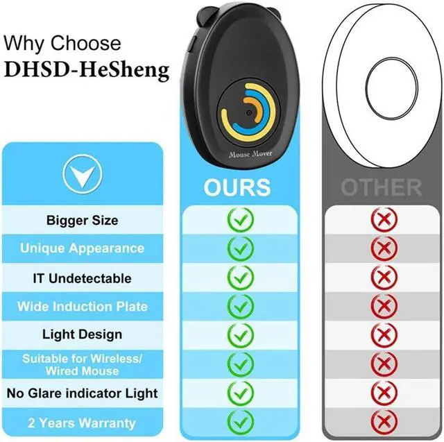 [Ultra-quiet, long-lasting durability]After a long time of repeated testing and customer trials, here comes the new version of the mouse mover, which is more stable and durable than other products on the market. With a built-in silent motor, our computer mouse shaker emits less than 20 decibels of subtle sound when running.