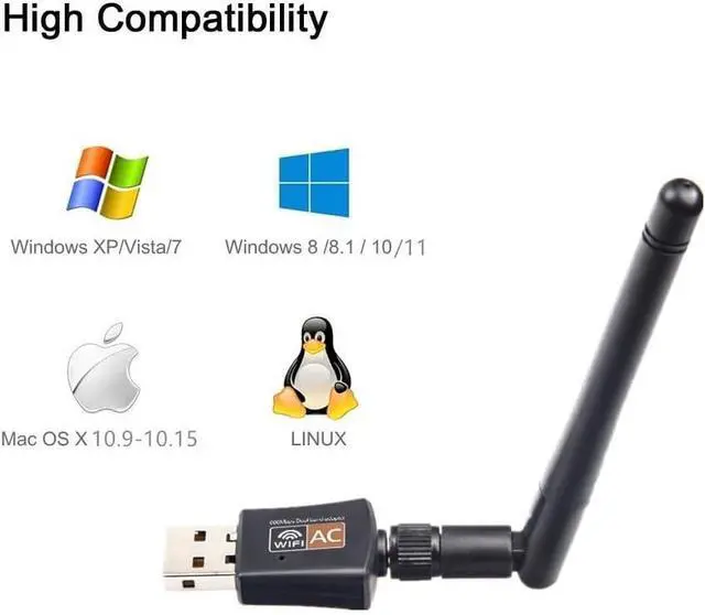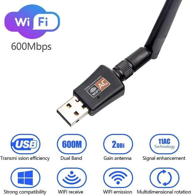 AC600 Mbps Dual Band 2.4 /5Ghz wireless USB WiFi Network Adapter with wifi Antenna, it can be used as a hotspot with soft AP function.
