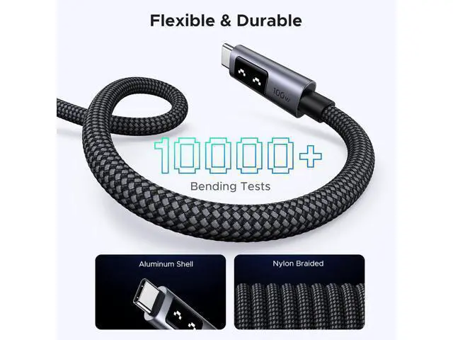 • Special Feature 100W Fast Charging, USB C to USB C, Led Smile Expression Light, Nylon Braided, 6.6FT