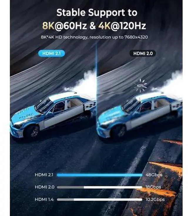 Hdmi Cable: 8K HDMI high-speed transmission bandwidth is up to 48Gbps, which is 2.67 times higher than HDMI 2.0 cables (18Gbps). HDMI 2.1 cable supports 8K 60Hz, 4K 120Hz, high refresh rate and resolution 7680 x 4320, which not only supports for Dynamic HDR and 12-bit color processing technology to restore the most realistic and vivid images. It also supports for eARC, VRR, QFT, ALLM, QMS, DTS: X, 3D video Display and more